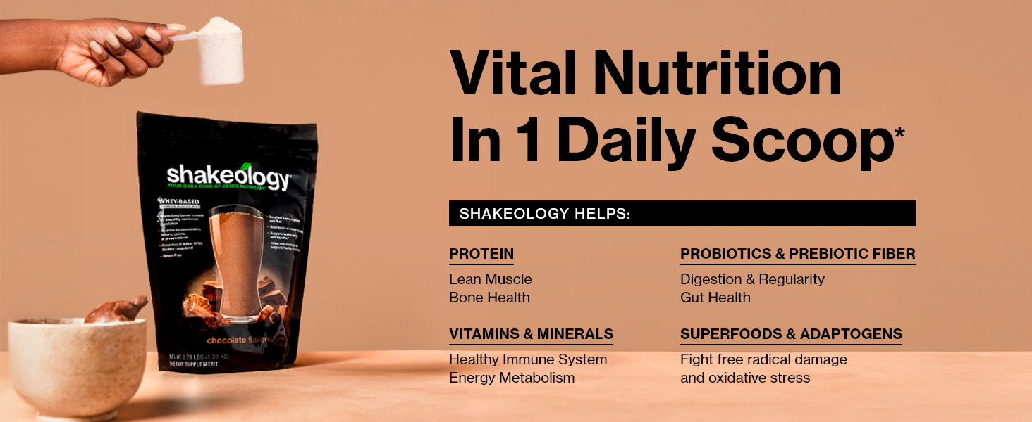 Each serving of Shakeology contains proteins, vitamins, minerals, phytonutrients, antioxidants, fiber, probiotics, digestive enzymes, and adaptogens. We source ingredients from across the globe to ensure the best quality. So before anything makes it into our shakes, hundreds of hours of work go into vetting and testing both the ingredients and the suppliers.
